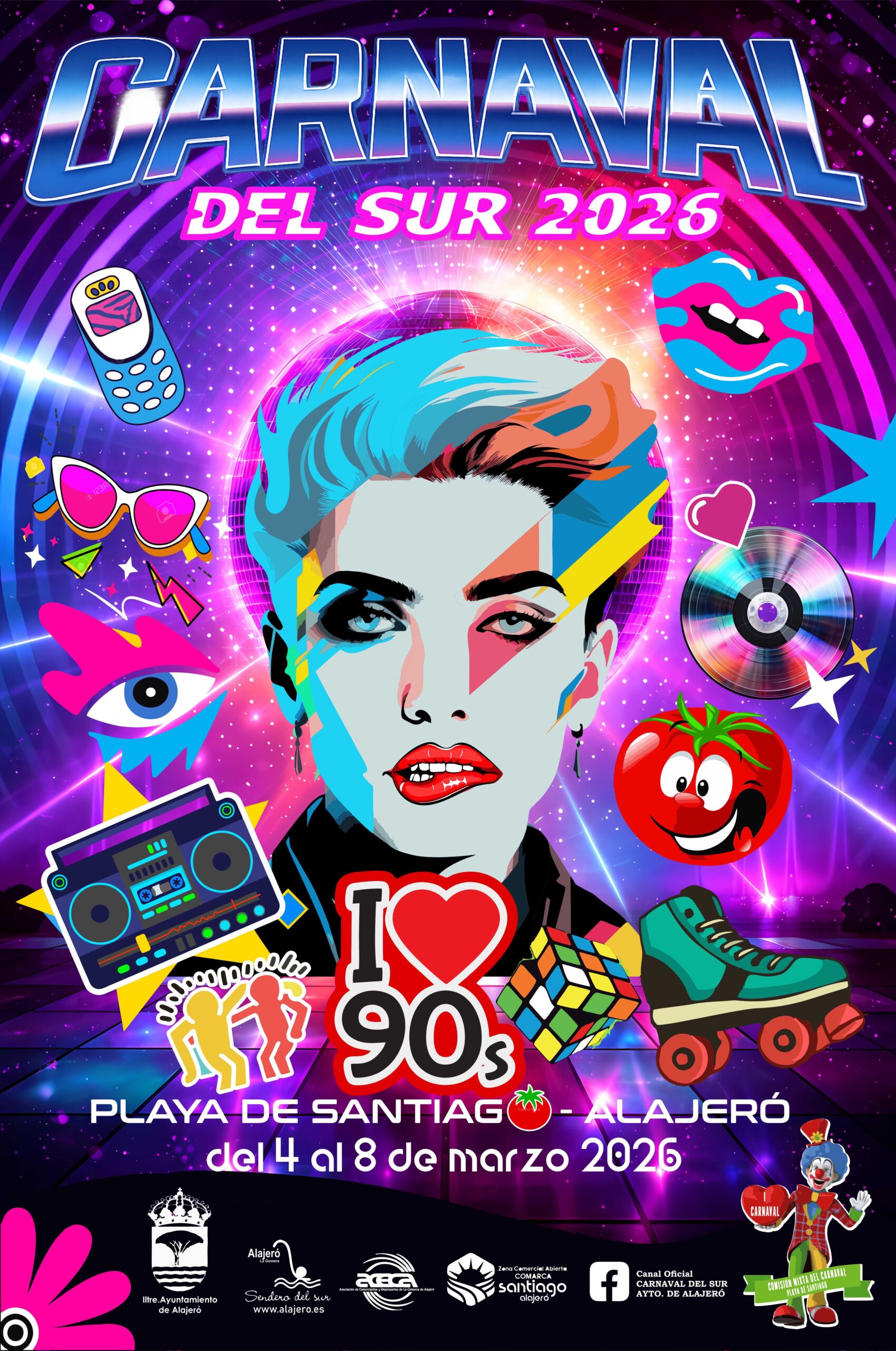 El Carnaval del Sur de Playa de Santiago bajo la alegoría ‘I Love 90’s’ ultima ya los detalles de organización y de su programa definitivo. Cuenta ya con cartel oficial, las fechas de celebración que serán del 4 al 8 de marzo y la organización de la Comisión Mixta del Carnaval del Sur y el Ayuntamiento de Alajeró.