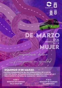 La jornada se desarrollará el domingo 8 de marzo en dos enclaves estratégicos de la isla. A las 12:00 h, la acción tendrá lugar en la Estación de Guaguas de Valle Gran Rey y, posteriormente, a las 17:30 h, se celebrará en la Estación de Guaguas de Vallehermoso. Estos espacios se convertirán en puntos de encuentro abiertos a personas usuarias del servicio y al público en general.